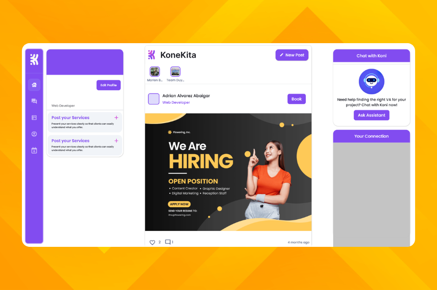 All-in-one platform for freelancers and virtual assistants with a built-in Kanban board, job postings, and client connections.